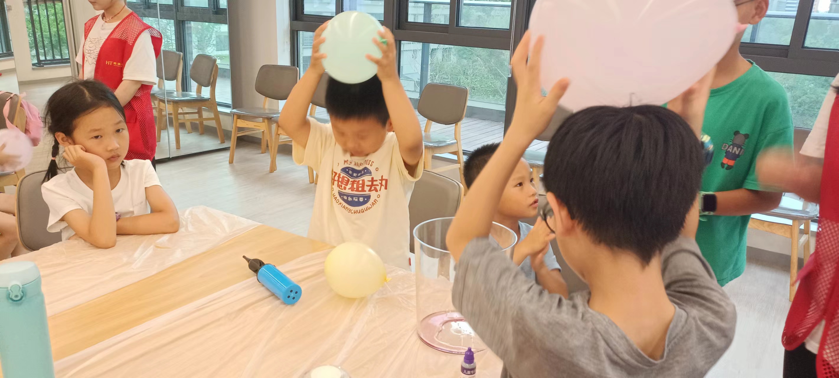近日,杭州师范大学信息科学与技术学院的同学们走进五常街道南滕社区,他们化身小老师带领小朋友们以一场神奇的科学实验秀,开启孩子们快乐的暑假生活。