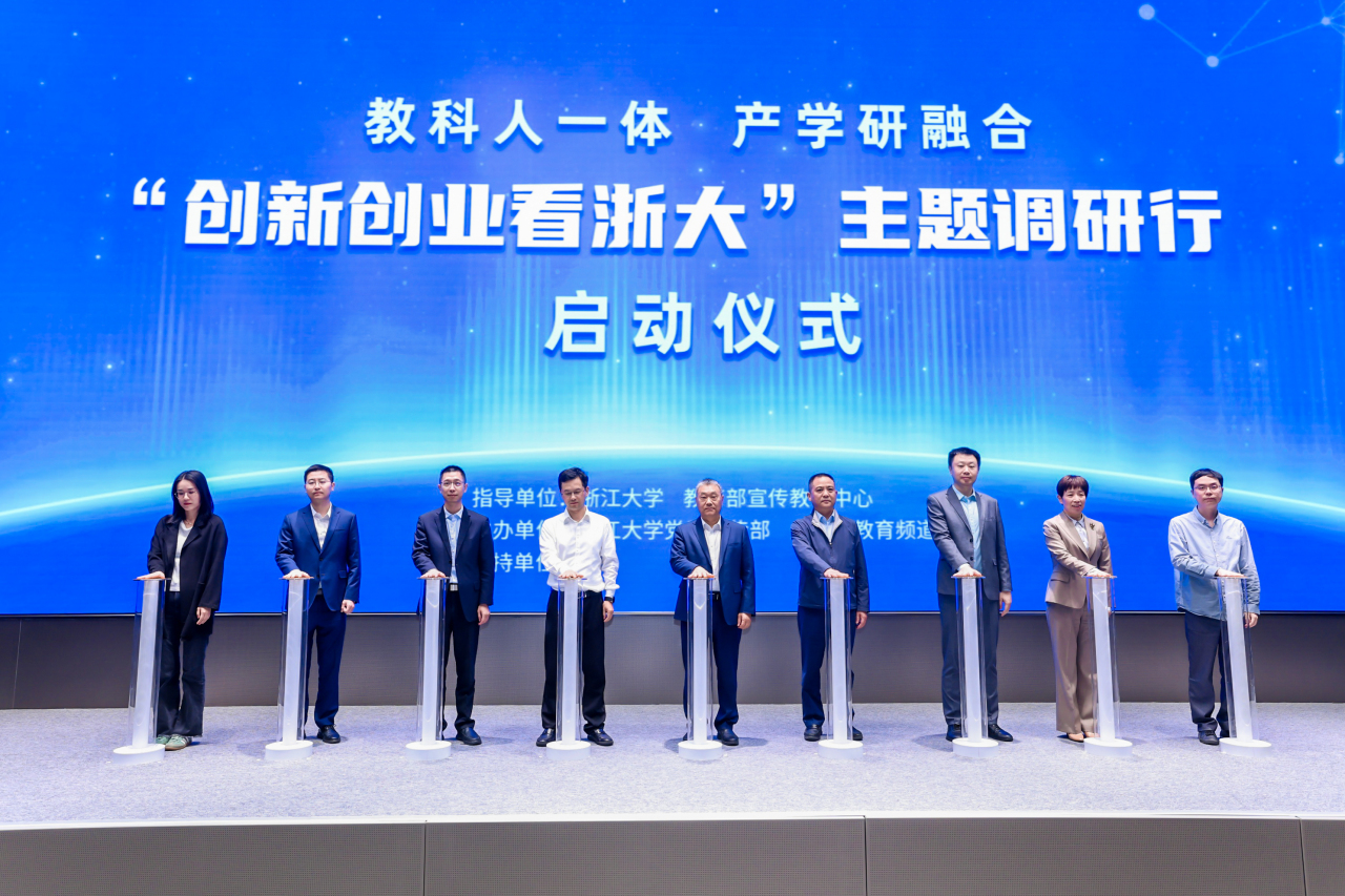 今日上午,“教科人一体产学研融合‘创新创业看浙大’”主题调研行启动仪式在浙江大学校友企业总部经济园举行。来自中央省市近50位媒体记者代表现场调研走访了浙江大学创新创业平台和部分校友企业代表,并将在接下来的调研行活动中,深入走访、近距离感受教科人一体、产学研融合的“浙大模式”。