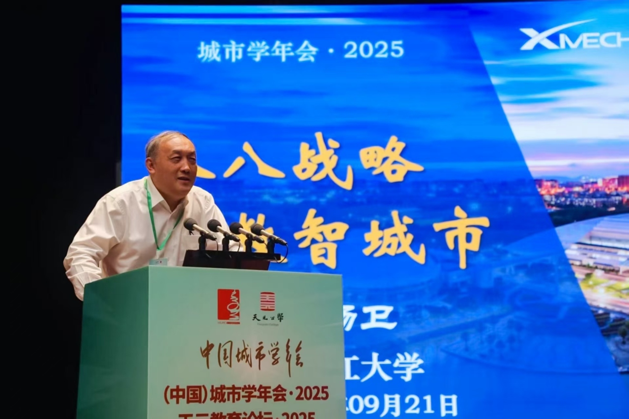中国工程院院士、同济大学原副校长吴志强以“城市生命,智慧复兴”为主题,提出城市作为“人工生命体”需持“终身陪伴”理念,这一思路可迁移至教育领域,他以同济大学全感知广场为例,介绍通过数据监测发现影响学生情绪与学习的规律,倡导教育融入城市发展,推动文明与人才培养协同繁荣。