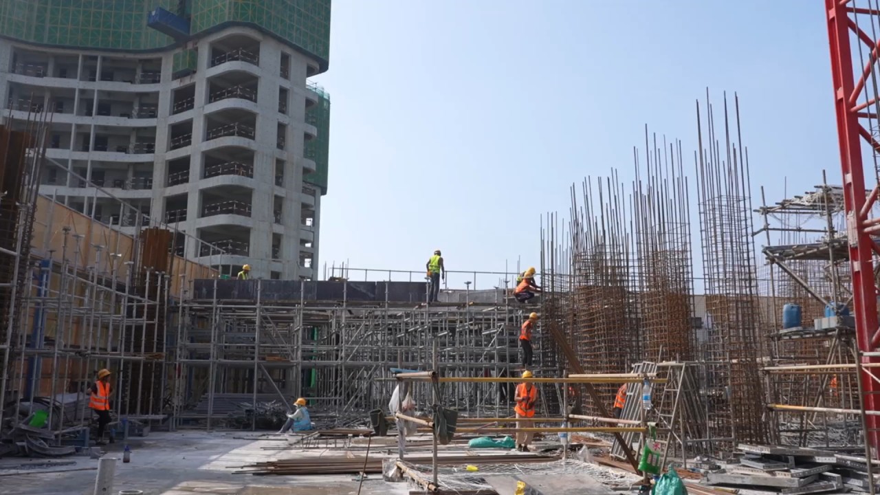 目前,四座超高层紧锣密鼓推进主体结构施工,A塔楼施工至33层,B塔楼施工至34层,C塔楼施工至49层,D塔楼装修施工至机房一层,“云门”正在进行装饰装修施工。现场1200余名工人正铆足干劲,全力以赴推进项目建设“加速跑”。