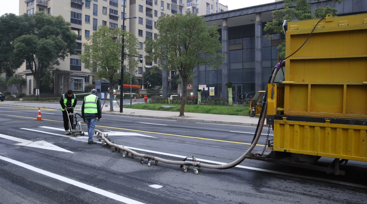 现场的工人告诉记者,他们是连夜赶来进行画线作业的,根据规范要求,重新画一条直行车道,减轻拥堵情况。
