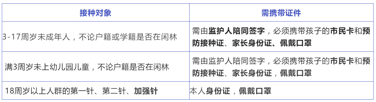 3、接种当天适量进食,避免空腹。请正确佩戴口罩,有序排队等候,自觉间隔一米社交距离。请携带孩子的市民卡和预防接种证,以便接种点同时做好免疫规划信息整合管理。