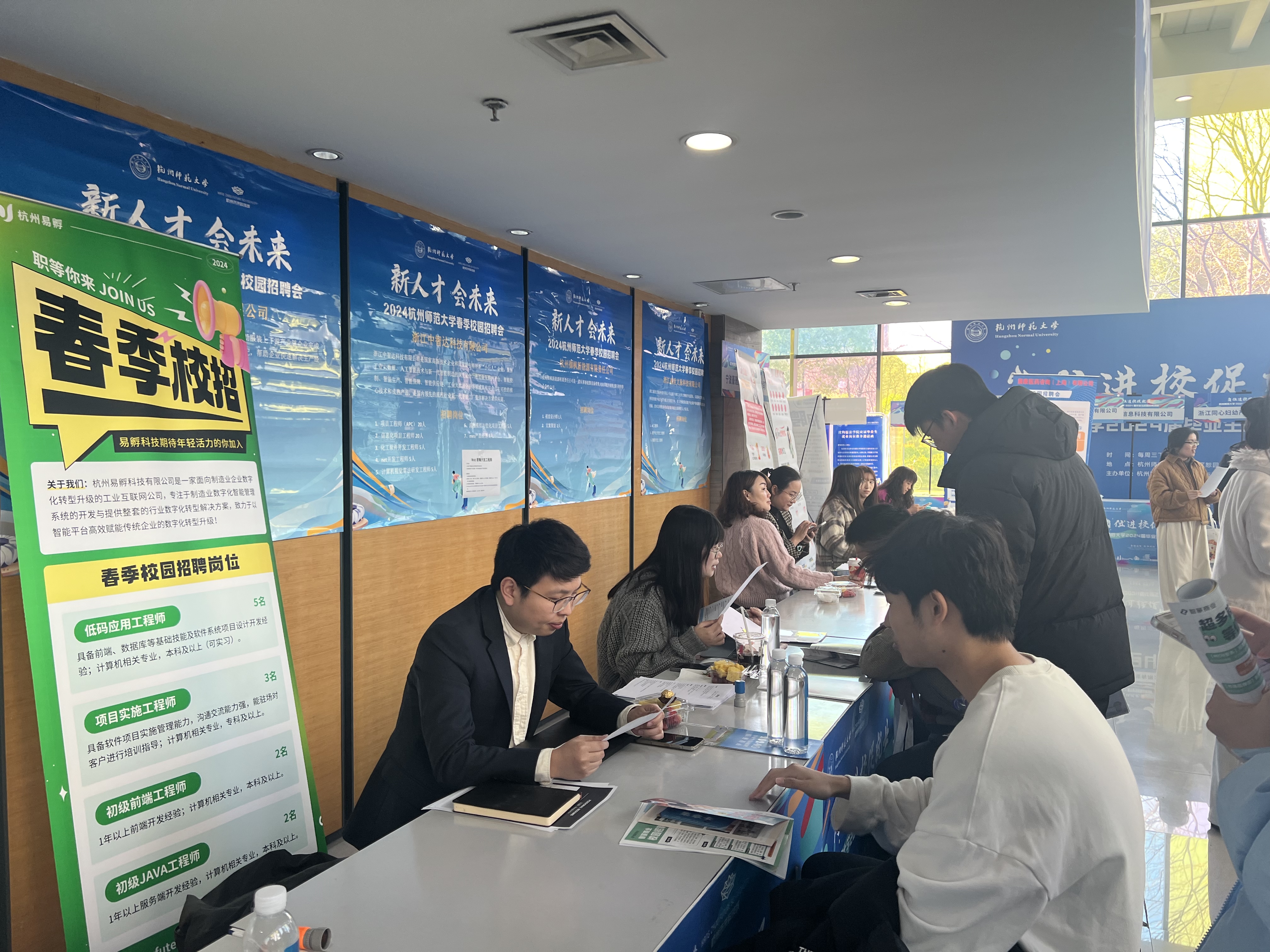 今天是杭州师范大学2024年首场微型招聘会,由学校就业指导与服务中心与学校信息科学与技术学院、工学院共同举办,围绕信息科技类专业,邀请了杭州未来科技城国际人才园、浙江人才大厦等地的70余家科技类企业送岗上门,共带来1500余个岗位,主要涵盖软件测试、信息安全、前端开发、数据分析等岗位,涉及计算机科学与技术、软件工程、数据科学与大数据技术等专业。