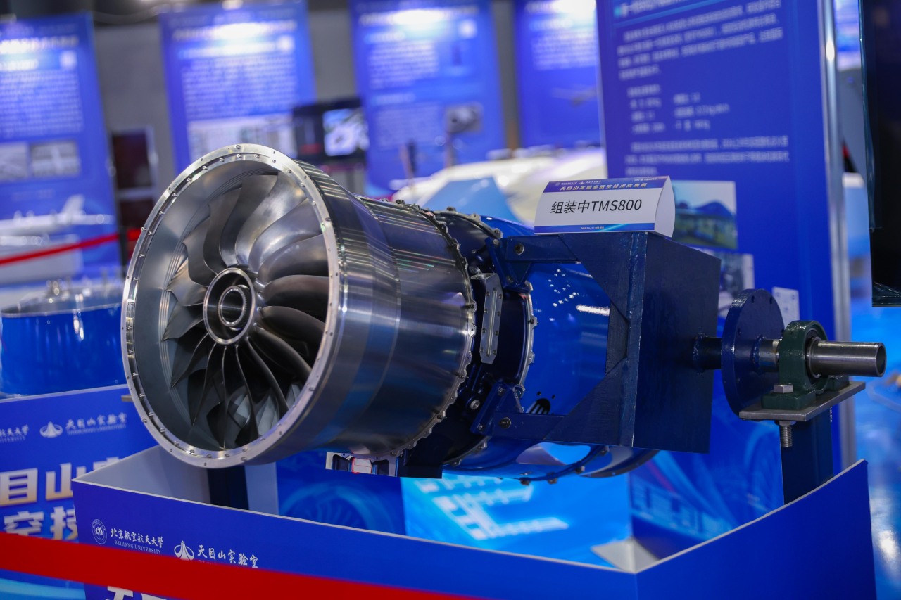 在智慧引擎与“机载大脑”展区,一台银灰色涡扇发动机引得业内人士驻足。这是天目山实验室自主研发的TMS-800涡扇发动机,推重比达5.8,油耗比国内同级产品低15%。“它为大型无人机装上了‘绿色心脏’。”研究员指着参数牌解释。