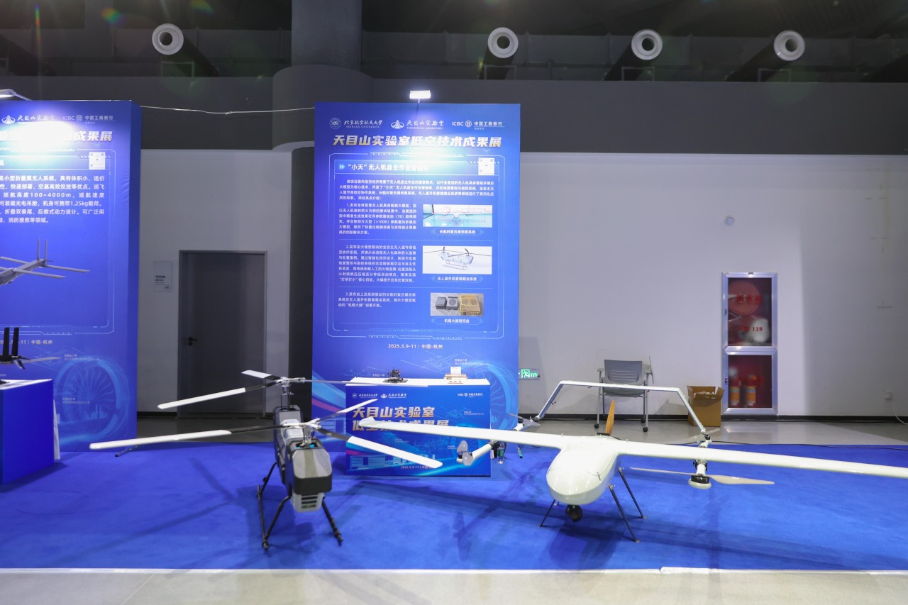5月的余杭,北航杭州国际校园科教美育中心被一片科技蓝笼罩。展台上,一架翼展超10米的灰白色无人机静静伫立,机身上“天目山三号”的标识格外醒目。这架“空中巨擘”能载重630公斤飞行1800公里,相当于从杭州直抵兰州,这正是天目山实验室为支线物流与应急救援打造的“超级混动货运无人机”。